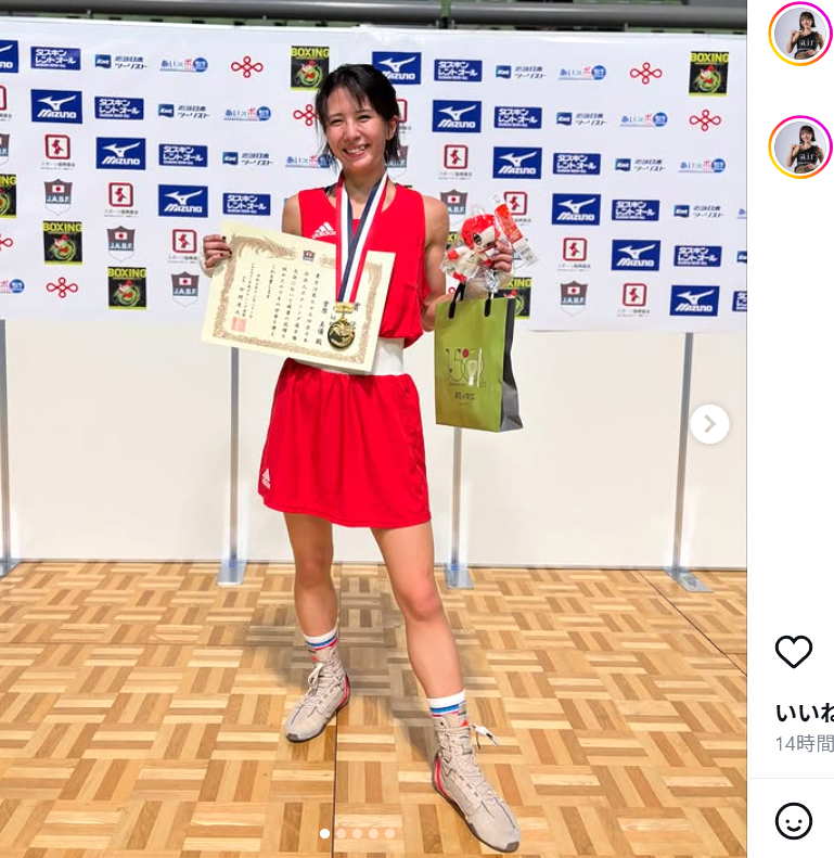 試合コスチュームで優勝を報告する菅原(@miyuu11224028)