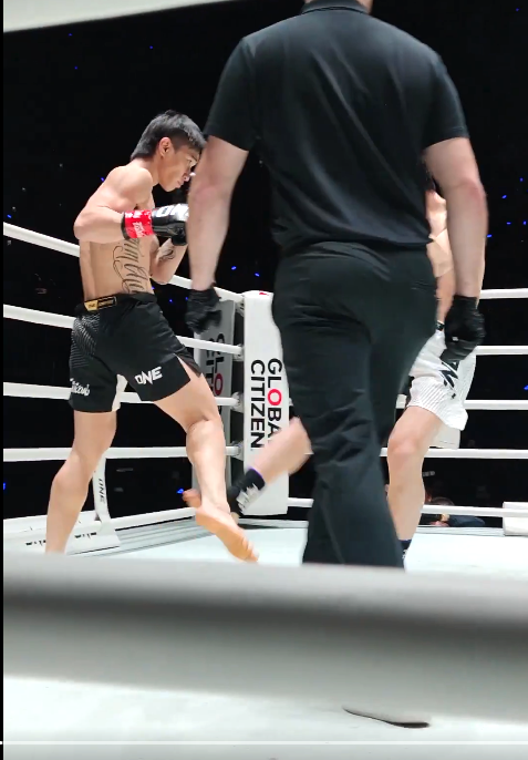 ワンチャイの右脚が変な角度に曲がってしまう(@ONEChampionship)