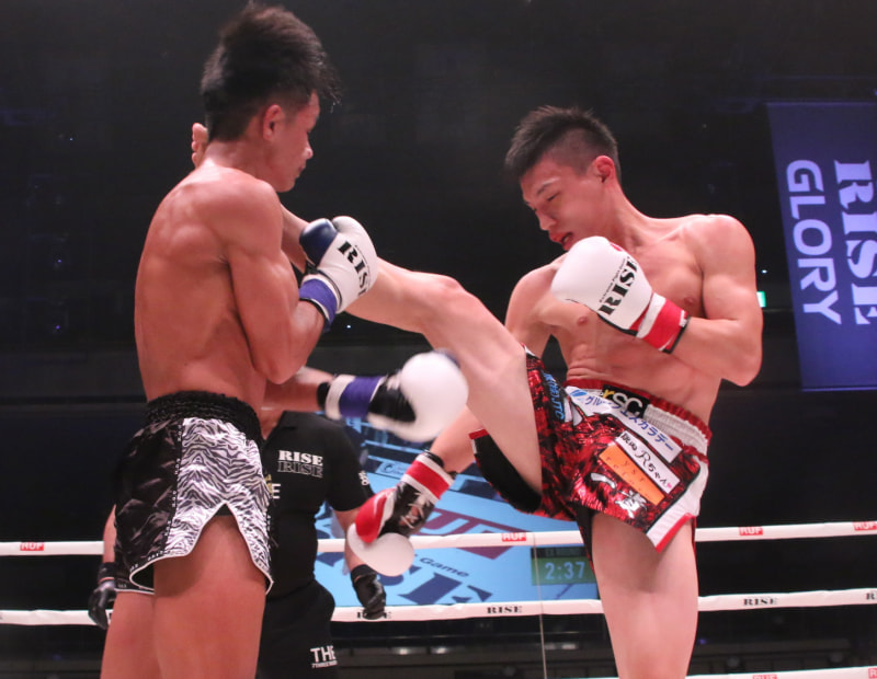 前回の対戦でハイキックをヒットした大﨑一貴(23年)