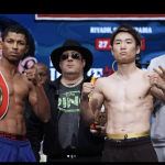 前日計量で好調ぶりを見せた寺地だが、相手のガルシアが計量後に体調を崩してしまった(@ken4rotより)