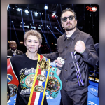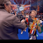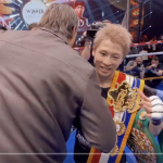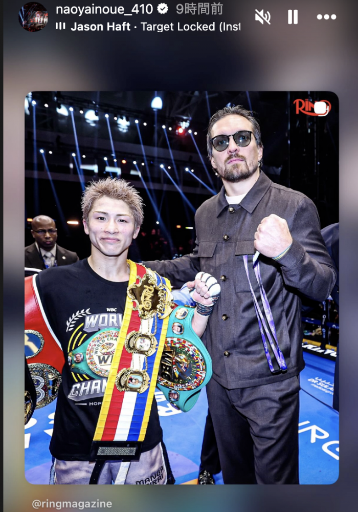 なんと井上(左)のリングに巨体のウシク(右)が登場した!(@naoyainoue_410 より)