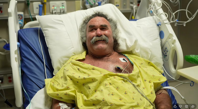 フライの体には心電図など様々なチューブが繋がれている(Don Frye YouTubeチャンネルより)