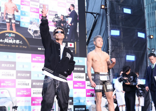 一方の篠塚は首にかけているネックレスをアピールし、笑顔で計量パス。ツーショット撮影で篠塚は、自身の名前を叫ぶファンに手をあげて返答。両者コンディションは良好だ。