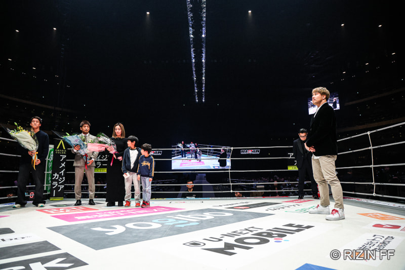 リングに上がった金原(右)