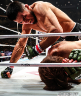 【フォト】朝倉の後頭部を殴るシェイドゥラエフ!朝倉を持ち上げた時の「鬼の背筋」も