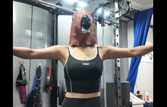 馬の被り物をかぶってサイドレイズ(@rin_rin_tより)