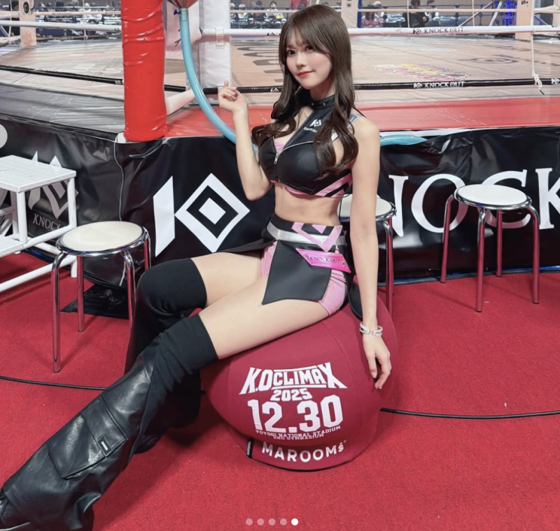 12月30日、ラウンドガールを務めた桃里(@rea_momosatoより)