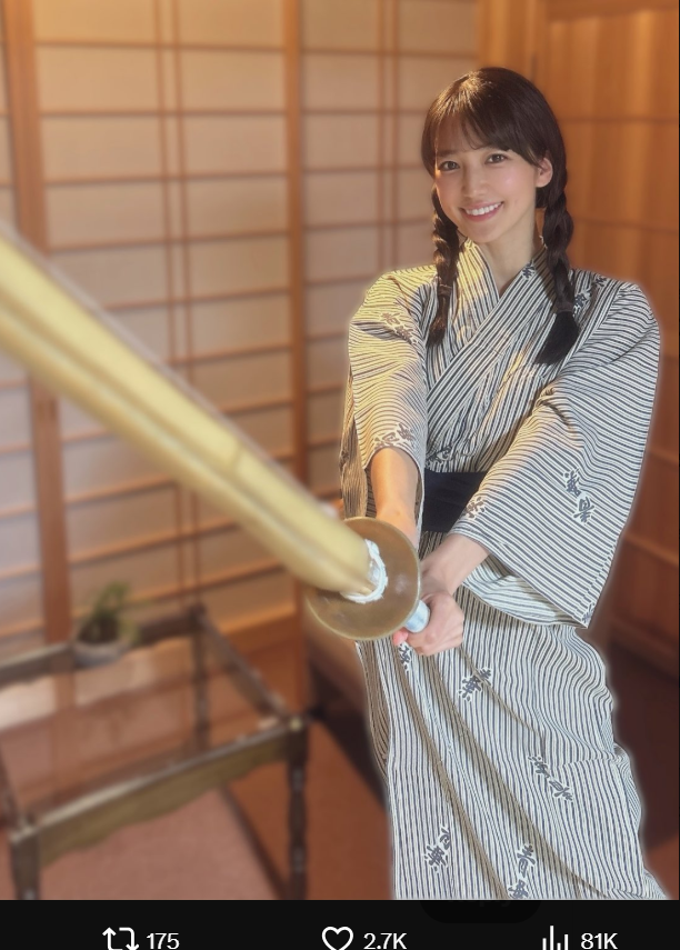 浴衣に竹刀を持つ凛々しい姿の佐藤(@satoakarii)