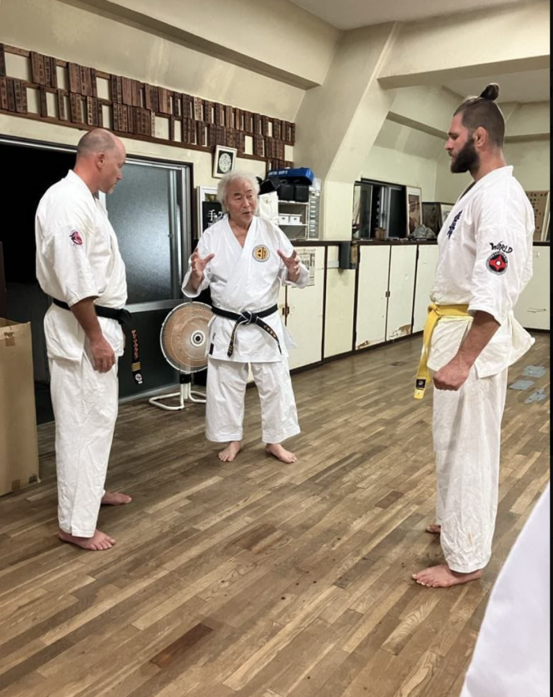 沖縄空手の道場師範の教えに耳を傾けるプロハースカ@jiri_bjpより