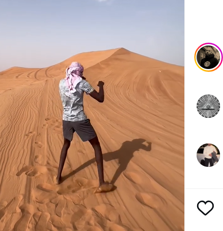 砂漠でシャドーするティババ(@tibaba.prg)