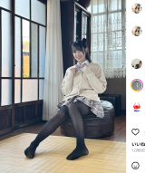 ・“デカ女”米倉みゆ、黒タイツOL姿で「仕事始め!?」筋トレとサウナで作り上げた美スタイル