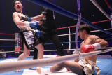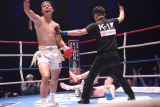 ▼【フォト】石井の右フックで黒川が崩れる!ダウン応酬の王座戦