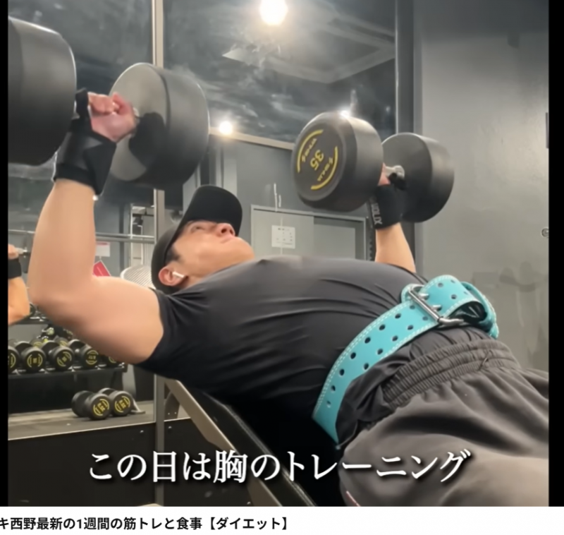 胸を鍛える西野(YouTubeチャンネル「コロチキ西野の100日ニキ」)