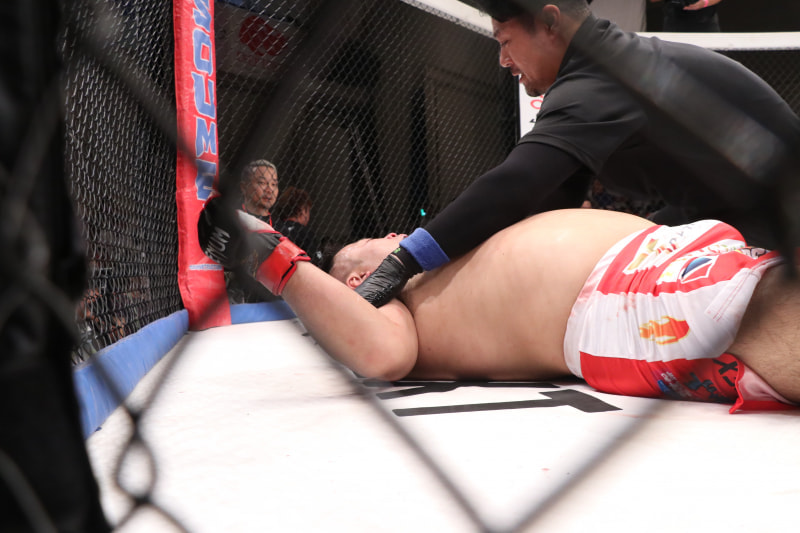 酒井は仰向けにダウン