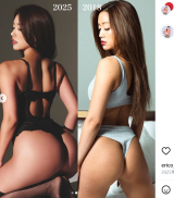 - 柳本絵美は、7年で巨大化したお尻の比較写真を投稿。右が2018年で左が現在の姿(@fabulous_emily)