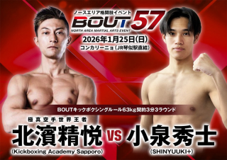 1月25日(日)、北海道・コンカリーニョでノースエリア格闘技イベント『BOUT57』が開催される。メインは北濱精悦(Kickboxing Academy Sapporo、極真空手世界大会優勝)と小泉秀士(SHINYUUKI+)による63kg契約のキックボクシングマッチである。