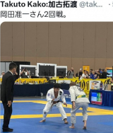 - 23年の柔術世界選手権で準々決勝で戦う岡田(加古拓渡@takutokako のXより)