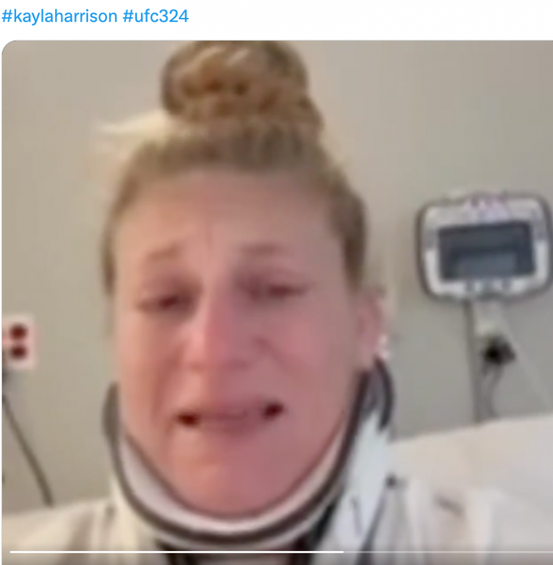 首にコルセットを巻いて欠場を報告@KaylaHより
