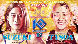 3月14日(土)に後楽園ホールで開催される『KNOCK OUT.62』の第1弾対戦カード発表記者会見が20日に都内で行われ、[KNOCK OUT-UNLIMITED女子 -54.0kg契約/3分3R]で、鈴木万李弥(KNOCK OUT クロスポイント吉祥寺)がタイソンRINA(TEAM TEPPEN)と対戦することが決定した。