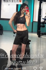 - インスタグラムストーリーに投稿した宮原の割れた腹筋は“くぼみ”が見えた(@miyahara_kanon)