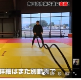 - 鈴木桂治に足払いされる角田(角田夏実YouTubeチャンネルより)