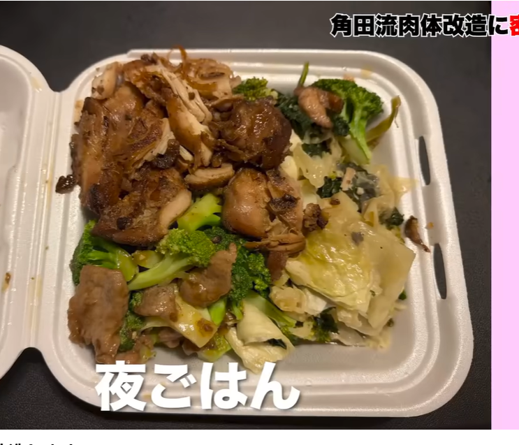 角田流肉体改造での夕飯(角田夏実YouTubeチャンネルより)