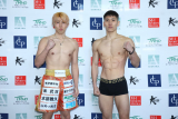 メインイベント(第9試合)の58.5kg契約で対戦する関口功誠(ALONZA ABLAZE)は58.45kg、森本直哉(琉飛会)は58.40kgで、それぞれ計量をパス。