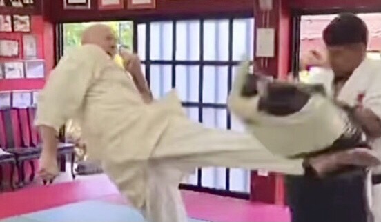ミットが折れ曲がるミドルキック!(RingMagazineのフェイスブックより)