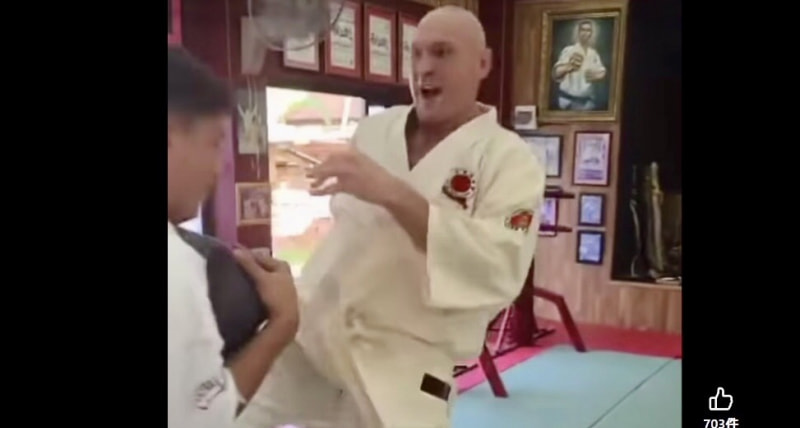 フューリー、ド迫力蹴り連打!(RingMagazineのフェイスブックより)