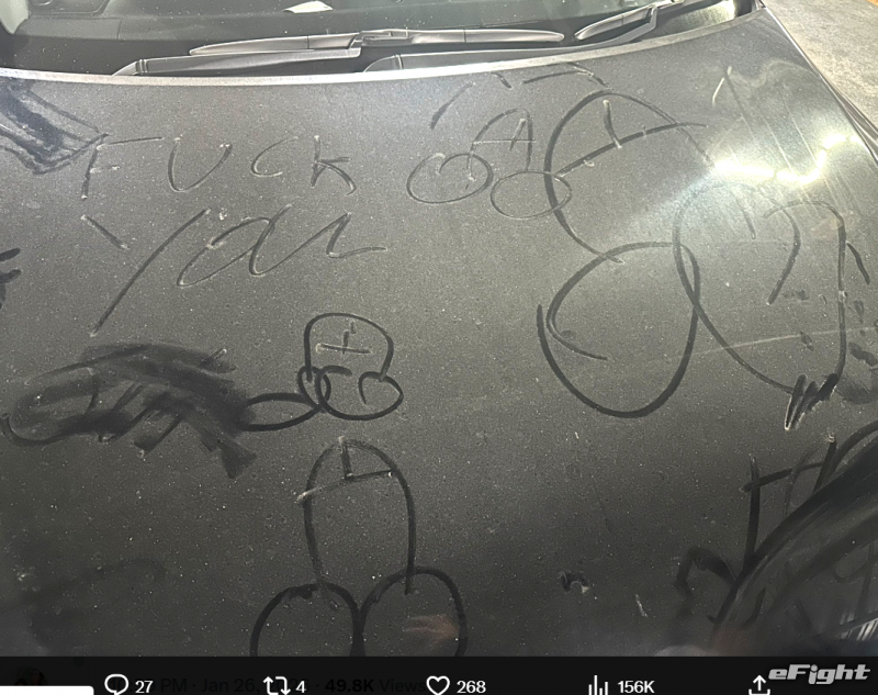 清水ゆりの愛車のボンネットに広い範囲で落書きされていた(@lily36__spoon)