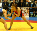 - 山本ファミリー。前列右から、聖子、父の郁榮、KID、美憂(2009年4月)
