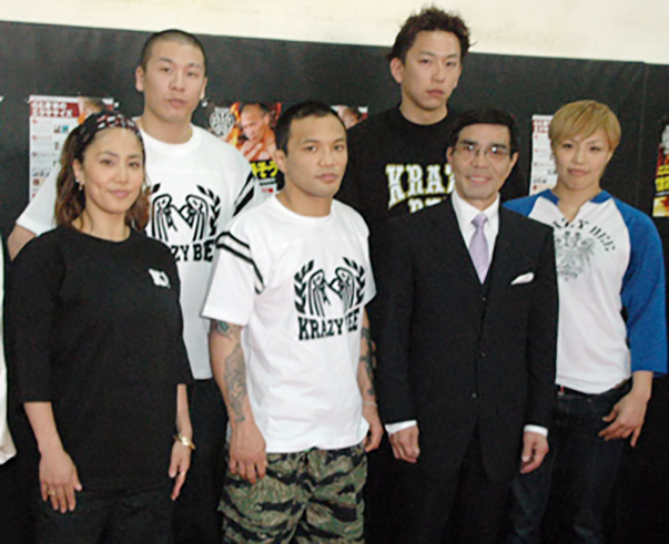 山本ファミリー。前列右から、聖子、父の郁榮、KID、美憂(2009年4月)