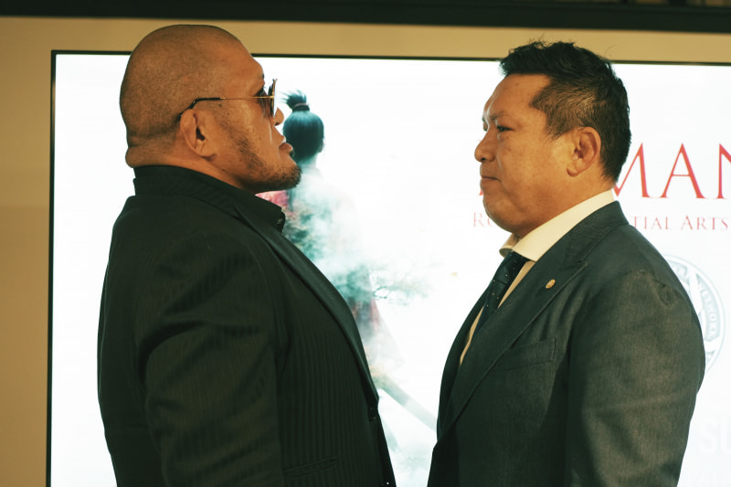 フェイスオフで視線をぶつける両雄