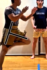 - 金澤氏は、脚を上げるだけではカーフキックのディフェンスは不十分だと指摘(金澤久幸のFacebookより)