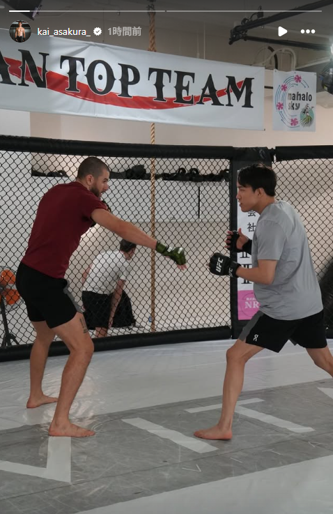朝倉海(右)とスパーするエリー(@kai_asakura_)