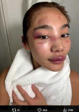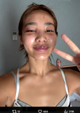 - みいちゃんの試合翌朝の腫れた顔(@mzmzmz_1121)
