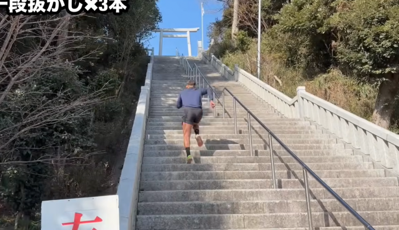 傾斜と段数のある階段ダッシュを行った(『相本宗輝YouTubeチャンネル』)