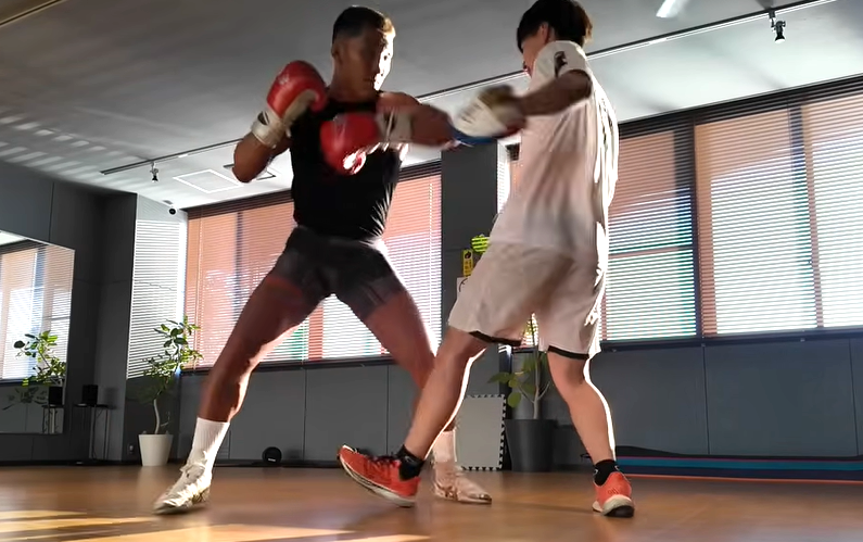 パンチのミット打ちは左右に構えて9ラウンド行った(『相本宗輝YouTubeチャンネル』)