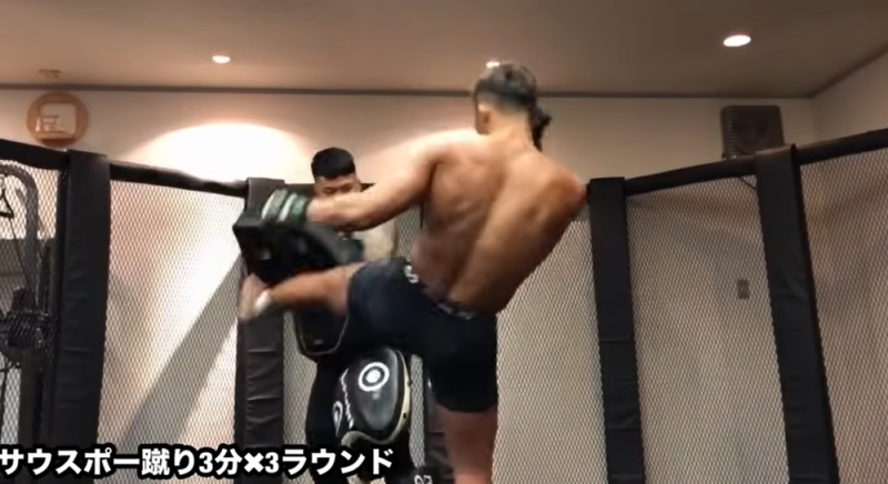 最後はジムでミット蹴りを9ラウンド(『相本宗輝YouTubeチャンネル』)
