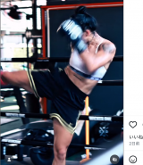 ・【フォト&動画】割れた腹筋&隆起する背中で豪快キック!ビキニ姿も
