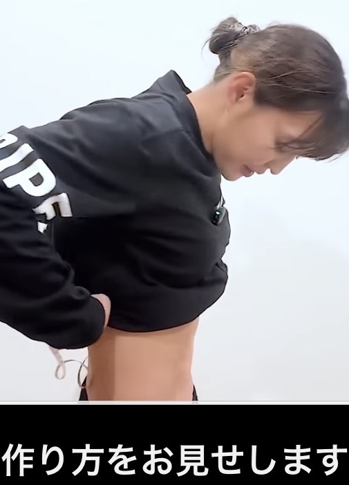 ウエストのサイズを測る角田(角田夏実YouTubeチャンネルより)