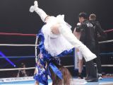 “奇跡の9頭身”斎藤恭代、K-1リングで華麗な側転!ミニ丈で”空中180度開脚”にファン釘付け