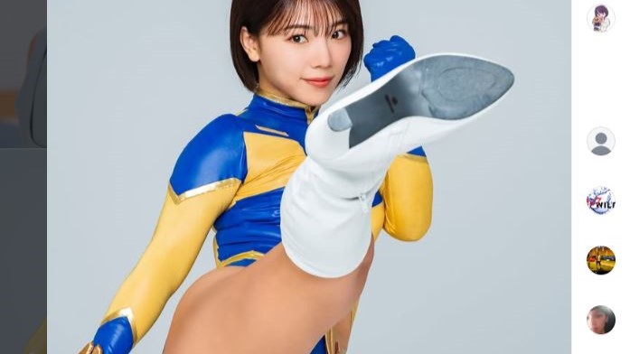 戦闘衣装でハイキックする大川成美(@naru_coco)