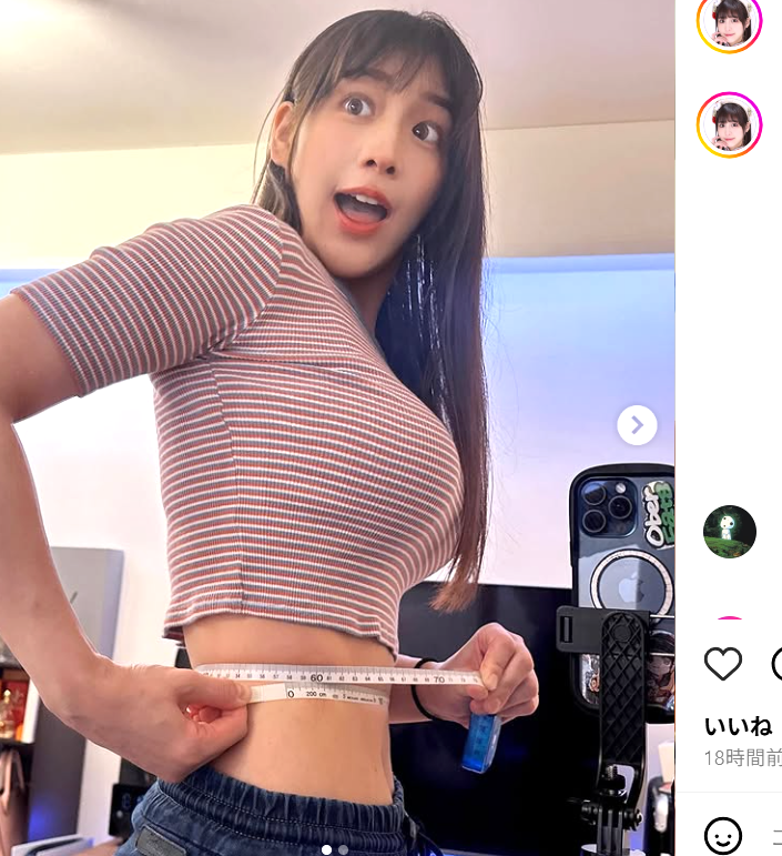 ”ウエスト58cm”を報告する上原(@wakanauehara_officialより)