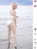 【フォト】彼女の白ビキニで鍛えた腹筋ボディ(写真はクリックで拡大)