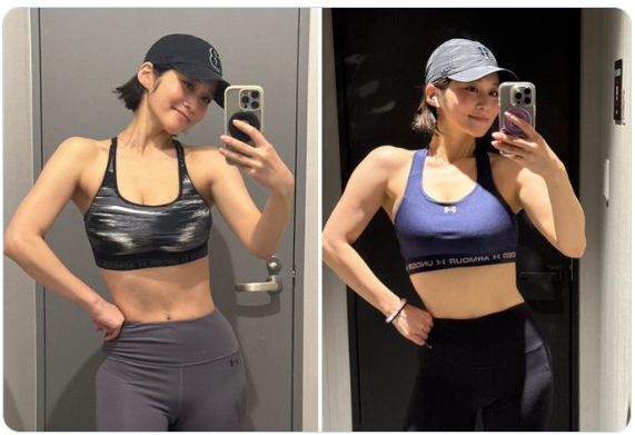 現在の盛り上がった肩(右)の変化を見せる高橋凛。上腕の筋肉もガッチリしている@rin_rin_t