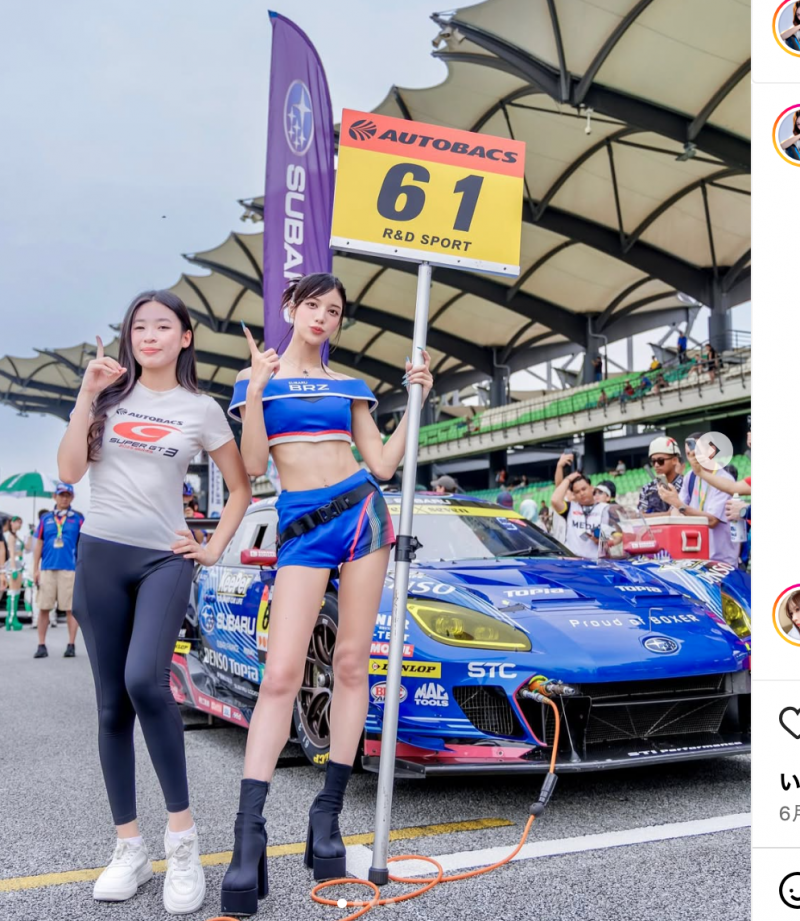 スバルのレースクイーンも務める@mizukami_kikiより