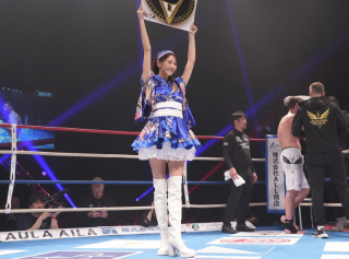 ・“奇跡の9頭身”斎藤恭代、K-1リングで華麗な側転!ミニ丈で”空中180度開脚”にファン釘付け
