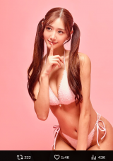 - ツインテールの髪型で白ビキニ姿の彼女は鍛えた腹筋を見せた(@yasuyosaito4)