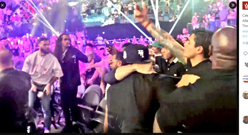 元ミドル級王者プラント(左)にビールをかけられ一触即発! @WORLDSTAR